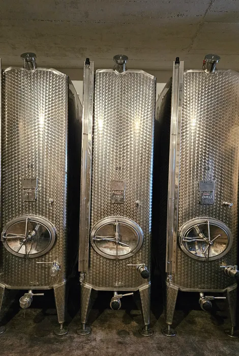 De très grandes cuves, des mini cuves, des fûts, des foudres, du bois, du ciment, de l'inox, de l'argile......